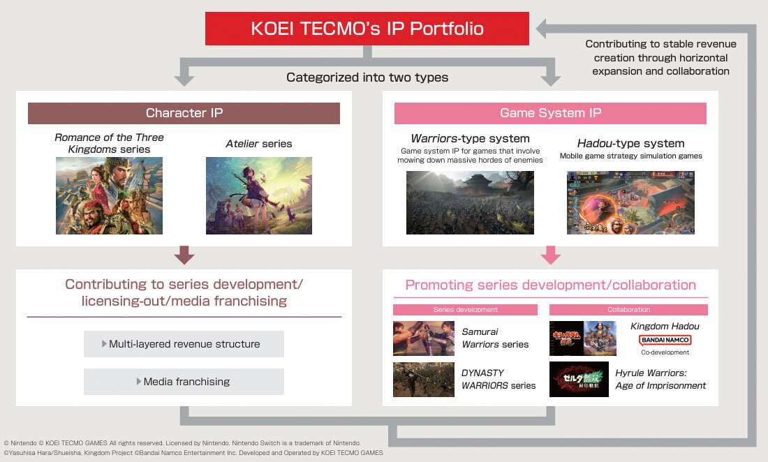 IPs in KOEI TECMO's can be categorized into two types in line with their characteristics: "character IP" and "game system IP".
