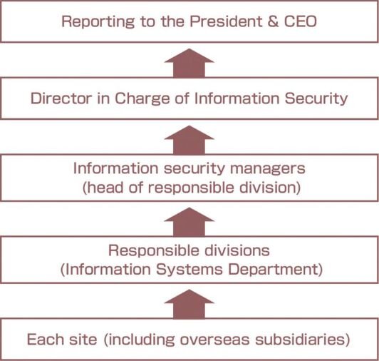 The Group has designated the officer in charge of information systems as the Director in Charge of Information Security. Currently, the Deputy General Manager of the Business Administration Division serves as the officer in charge of information security for the Group.