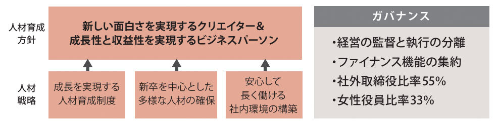 また、取締役会の社外取締役を過半数とし、経営の監督と執行の分離を進めることで、ガバナンス体制の強化を進めていきます。加えて、2025年4月に新設した株式会社コーエーテクモコーポレートファイナンスにグループの資産運用を集約し、運用機能に関するガバナンスを強化すると共に、最適なキャッシュマネジメントを実現します。こうした取り組みを通じて、経営の透明性を高め、意思決定の質を向上させることで、安定的で持続的な成長を支える強い基盤を築いていきます。