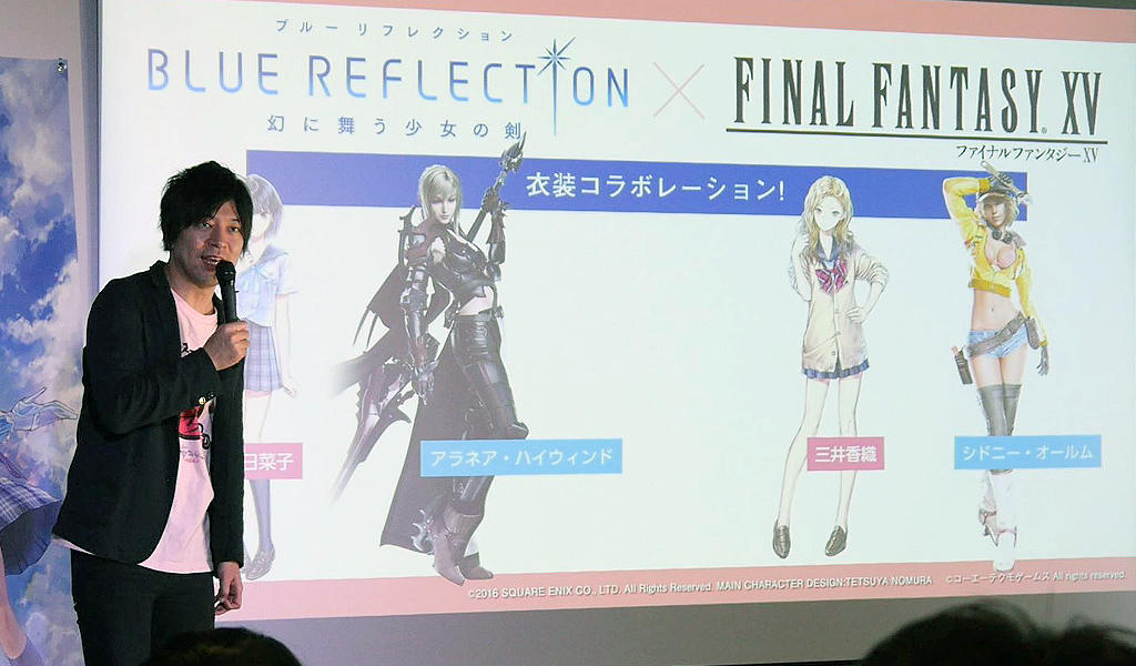 『BLUE REFLECTION 幻に舞う少女の剣』のプロデューサーを務めた細井順三が、キャラクターデザインと監修を担当した 岸田メルさんとともに壇上に立ち、本作の起ち上げの経緯とゲームのコンセプトを紹介しました。